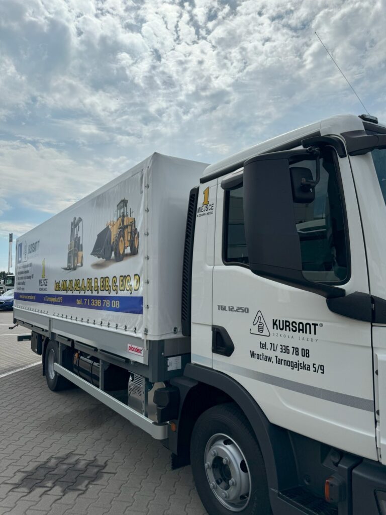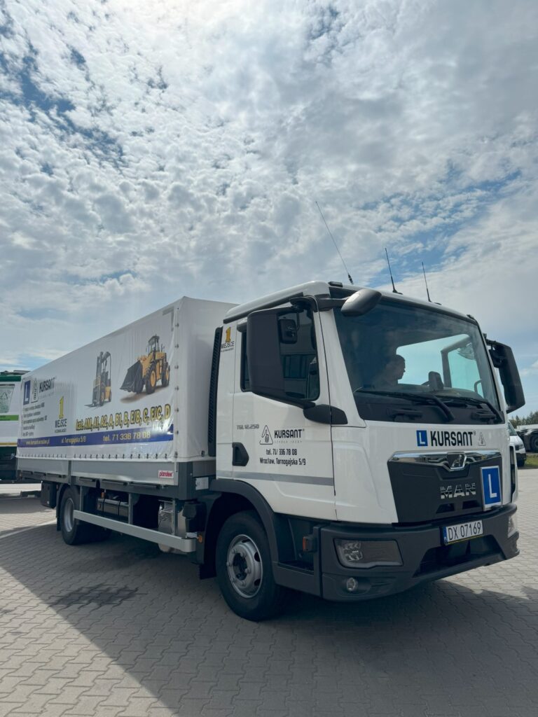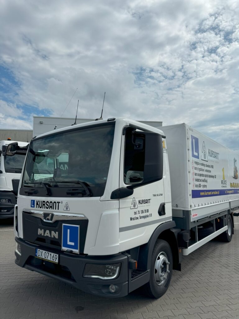 W związku ze zmianami i posiadaniem od lipca nowego pojazdu przez DORD, dbając o obecnych i przyszłych kursantów zakupiliśmy nową ciężarówkę MAN TGL 12 250 z automatyczną skrzynią biegów. Posłuży do szkolenia w zakresie kat. C oraz E/C.